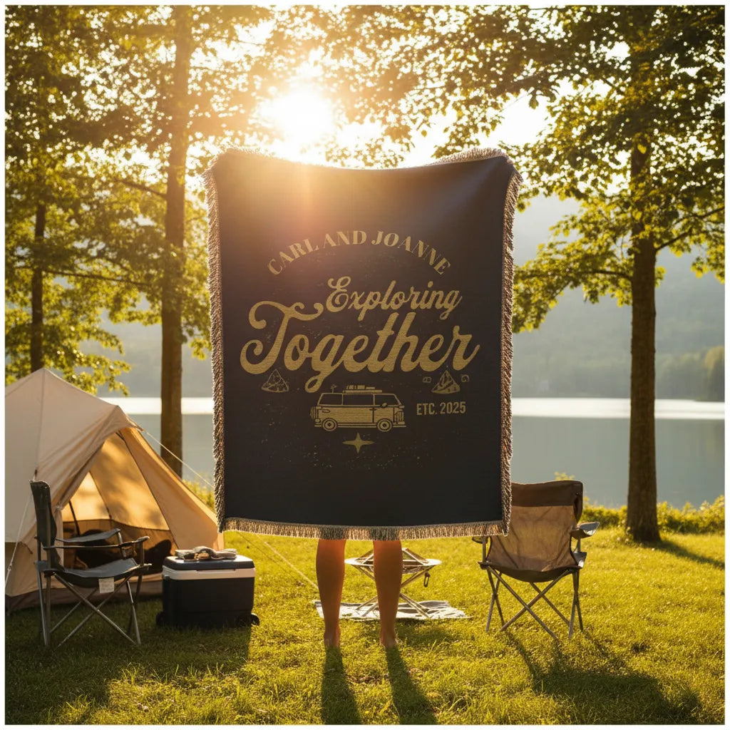 A tribute to the couples who find their story in the open road. The Exploring Together blanket captures the spirit of shared journeys, from quiet mountain mornings to starry desert nights. Personalized with your names and year, it’s a timeless keepsake woven for those who believe that every mile traveled is better side by side.